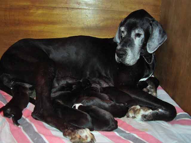 Seit 04.12.09 haben wir 9 schwarze Welpen, es sind 5 Rüden und 4 Hündinnen.